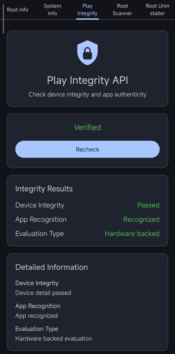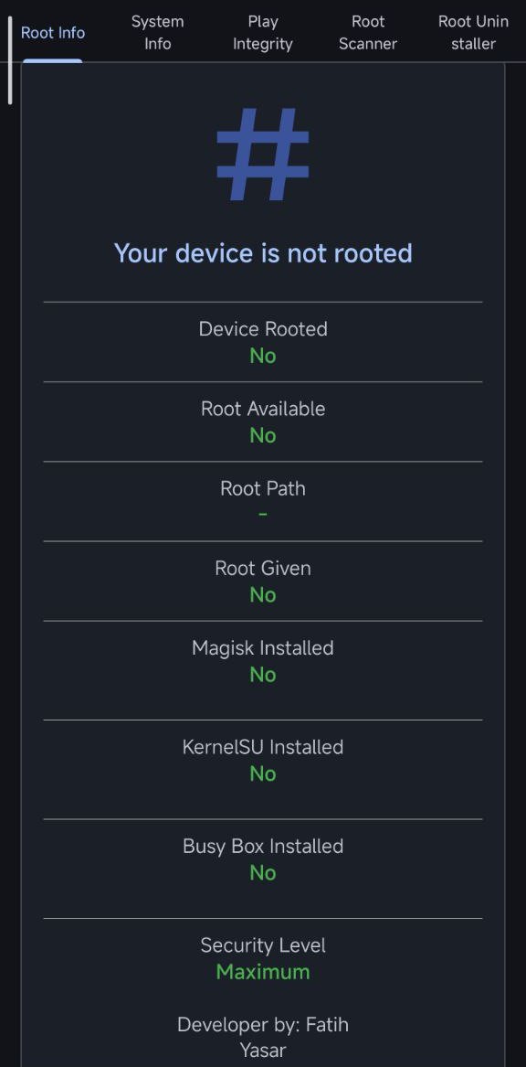 Root Checker is your trusted Android security companion — designed to instantly detect whether your device has root access, verify Play Integrity, and confirm Device Integrity without any technical hassle.